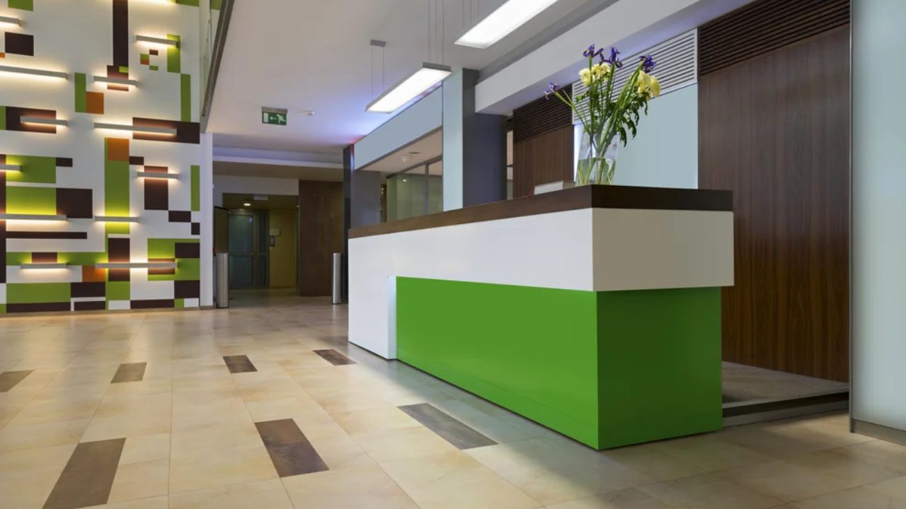 A reception area, also known as a lobby or front desk area, is a space in a building or office where visitors or guests are received and greeted.